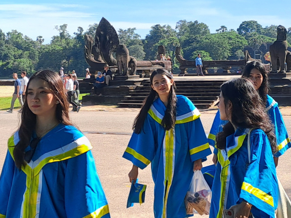 Et voilà, c’est parti : à chaque temple, on pose des questions. Aux touristes, aux guides, aux gardiens… Même les étudiants en visite sont interrogés !