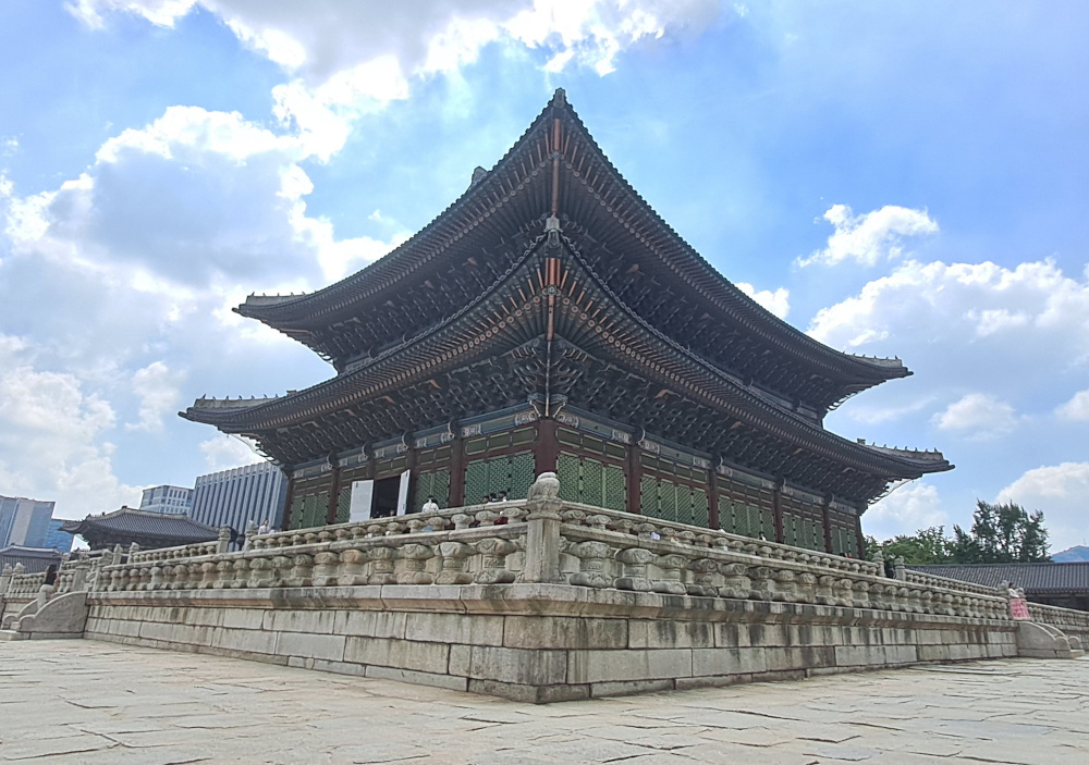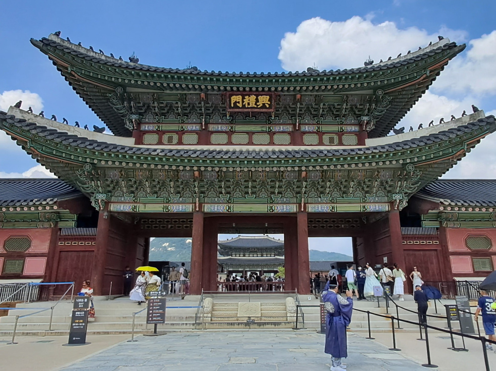 Mais juste à côté de cette modernité, on découvre des quartiers anciens aux toits courbés et aux maisons en bois, comme dans le vieux village de Bukchon. J’ai aussi visité le palais Gyeongbokgung, avec ses grands toits décorés et ses gardes habillés comme autrefois. 👑