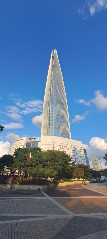 🎡 Et puis, j’ai vu un château magique à Lotte World, fait de tours bleues et dorées, comme dans un conte de fées ! D’en haut de la tour Lotte, j’ai regardé toute la ville : ça ne s’arrêtait jamais !