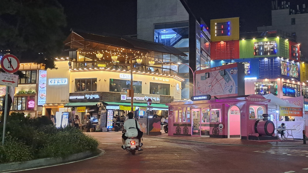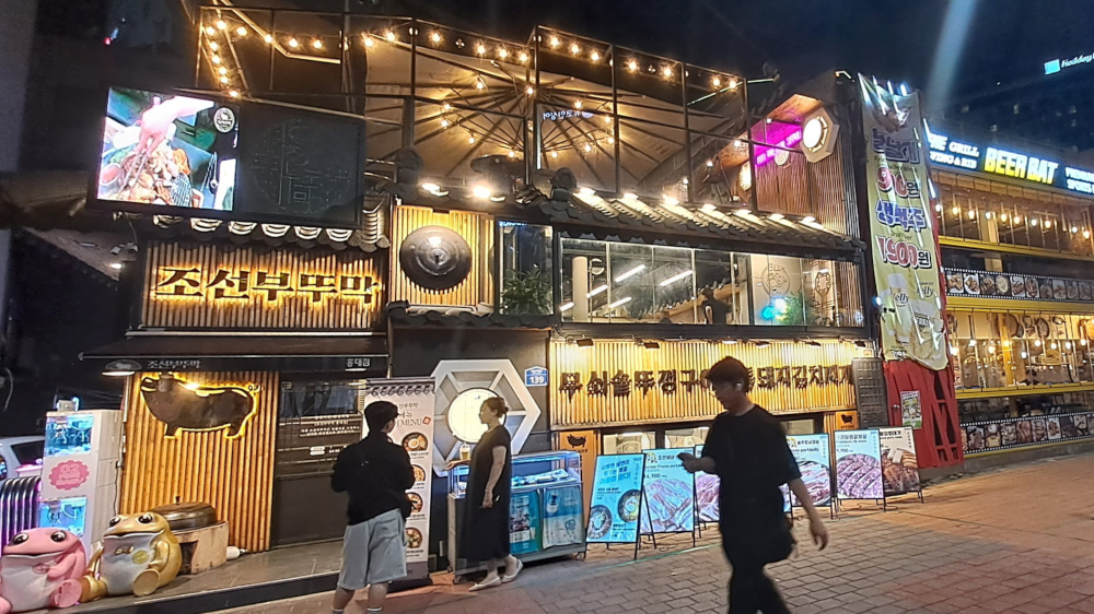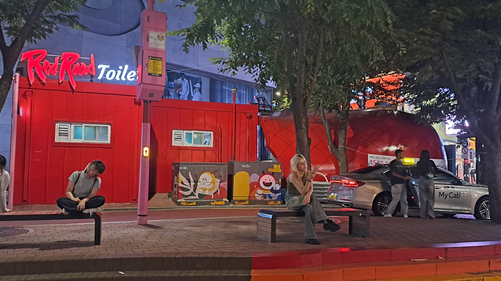Des lumières de toutes les couleurs, des restaurants pleins à craquer, des écrans géants, des petites rues où tout le monde flâne, mange, danse ou chante. J’ai vu des toilettes rouges décorées comme dans un clip K-pop, des restos en forme de bateaux, des stands de street food, des néons partout ! 🌟🍡