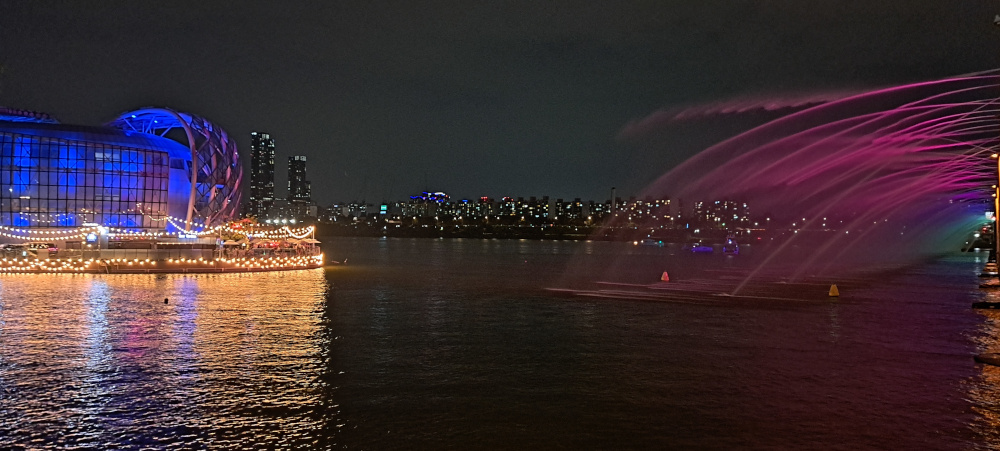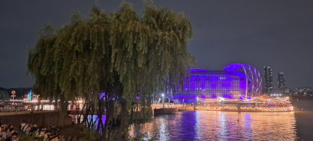 Les lumières du pont Banpo s’allument, le fleuve brille, et même les arbres ont l’air de sourire.