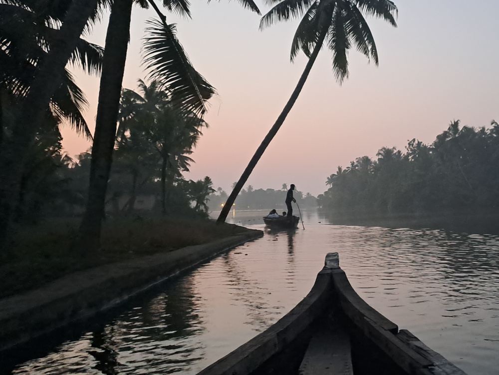 🔹 🌊 Les Backwaters — Des canaux tranquilles où les barques glissent comme des plumes