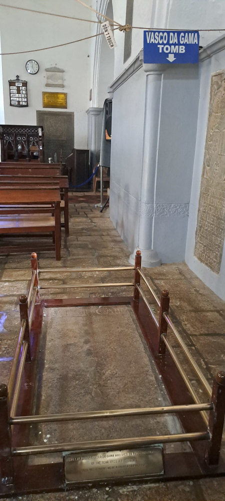 En 1500, Vasco de Gama arrive avec ses bateaux. Il fait construire une église en bois (Saint-François) (la première église catholique en Inde!) et une maison européenne (la 1ère maison européenne en Inde!). Il meurt ici en 1524, et est enterré à Cochin avant que sa dépouille ne reparte au Portugal ! Mais… les Portugais (chrétiens catholiques) ne sont pas toujours très gentils avec les chrétiens syriaques…