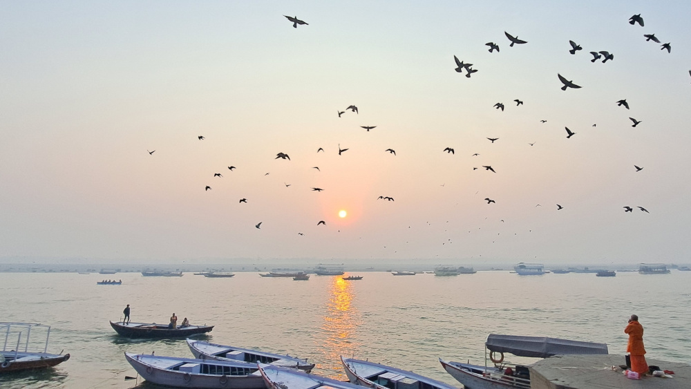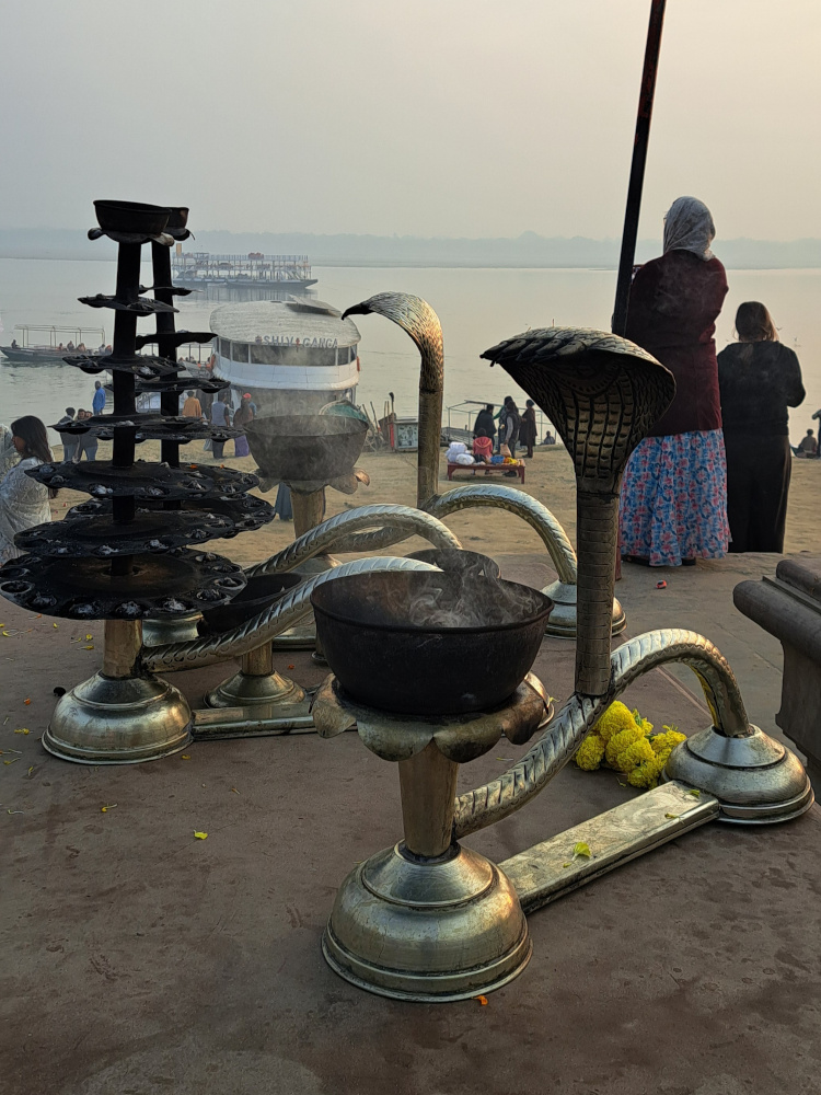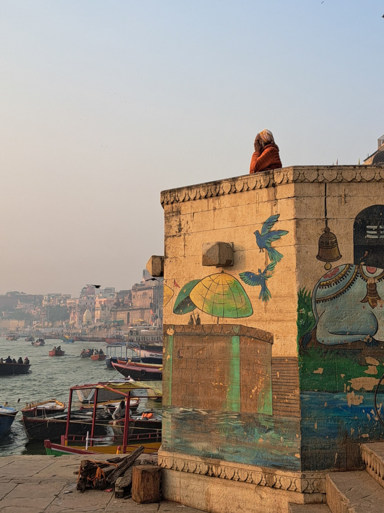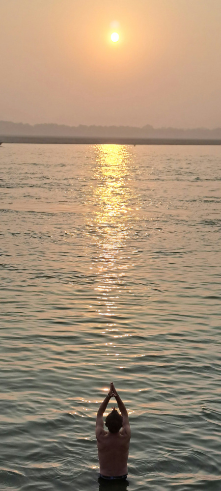 On murmure avec le monde, avec la lumière, avec ce fleuve sacré qui lave autant les pieds que les pensées.