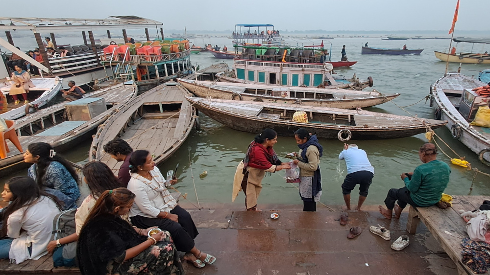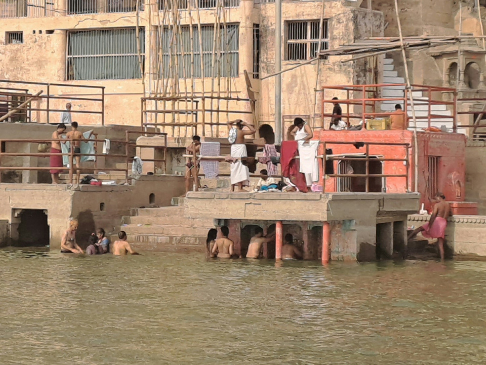 Sur les marches, des femmes se lavent, sâenroulent dans des saris mouillĂ©s, savonnent les cheveux dâune vieille tante.