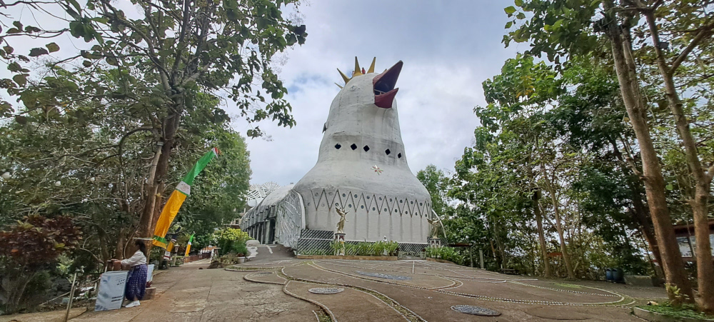 Ahhh… Bukit Rhema alias la « Chicken Church ». Rien que le nom, déjà, on sent que ça ne va pas être une cathédrale comme les autres. Allez, installe-toi bien, ouvre grand les oreilles : on part en Indonésie, sur l’île de Java, tout près du temple géant de Borobudur. Et là, au milieu de la forêt tropicale, hop, surgit une drôle de bête : une église en forme… de poulet géant. Oui oui, tu m’as bien entendu. Un poulet. Avec une crête et un bec. On dirait que quelqu’un a eu une idée un peu bizarre… et il l’a fait pour de vrai.