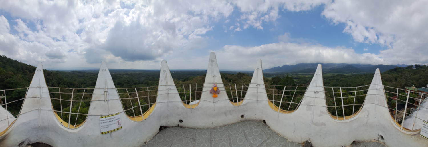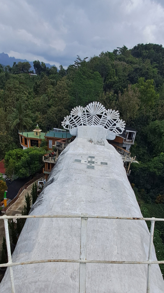 Alors, qui a pondu cette idée-là ? C’est un monsieur qui s’appelait Daniel Alamsjah. Dans les années quatre-vingt-dix, ce monsieur travaillait à Jakarta, la grande ville, mais il venait souvent en vacances dans la région de Magelang. Et un jour, pendant qu’il priait, il a eu une vision. Pas une vision de pizza ou de vacances à la plage… non, une vision spirituelle : il a vu un bâtiment en forme d’oiseau. Et pas n’importe quel oiseau : un genre de colombe. Symbole de paix, tu vois ?
