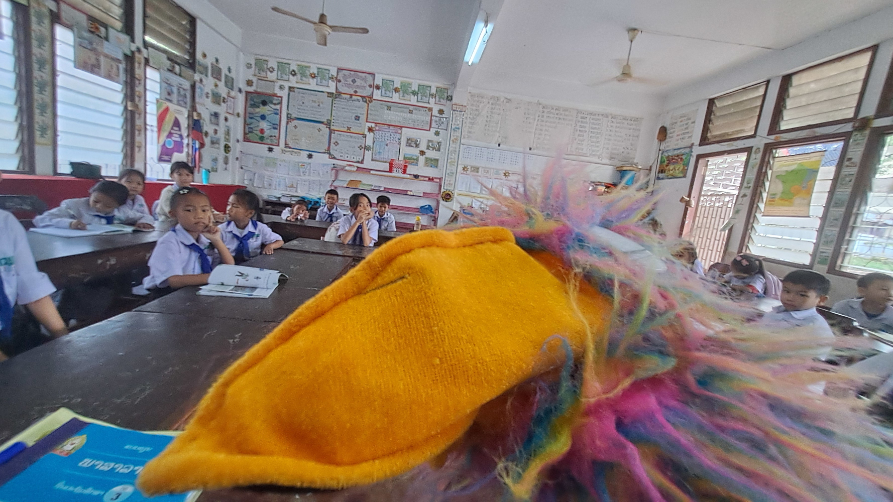 Câest au petit matin que jâai dĂ©couvert lâĂ©cole primaire Aphay. Devant le portail, un petit camion bleu sâest arrĂȘtĂ© : câĂ©tait le bus scolaire ! Une douzaine dâenfants en uniforme en sont descendus dans un joyeux tumulte, certains sautant dâun pas lĂ©ger, dâautres encore un peu ensommeillĂ©s. Moi, jâobservais tout ça, cachĂ© derriĂšre un arbre… puis jâai pris mon courage Ă deux ailes, et jâai suivi les Ă©lĂšves jusquâĂ leur classe.