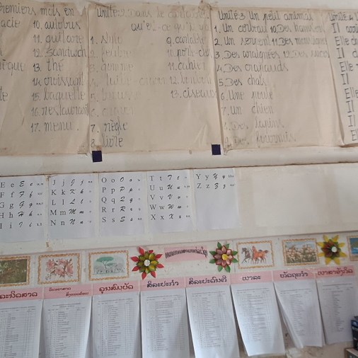 Ă lâintĂ©rieur, surprise ! Des posters en français et en lao tapissent les murs, des dessins colorĂ©s s’accrochent partout et des Ă©toiles en papier dĂ©corent les affiches. Câest une Ă©cole bilingue ! Les enfants apprennent Ă lire, Ă Ă©crire et Ă parler en deux langues dĂšs le plus jeune Ăąge. đ§ đ