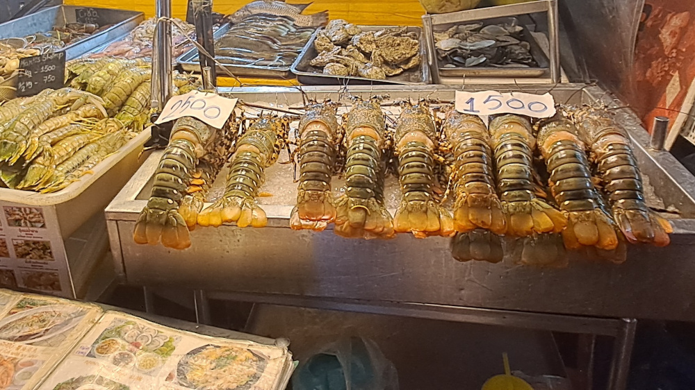 - Les marchés de rue avec des fruits, des poissons, des crustacés géants 🦐