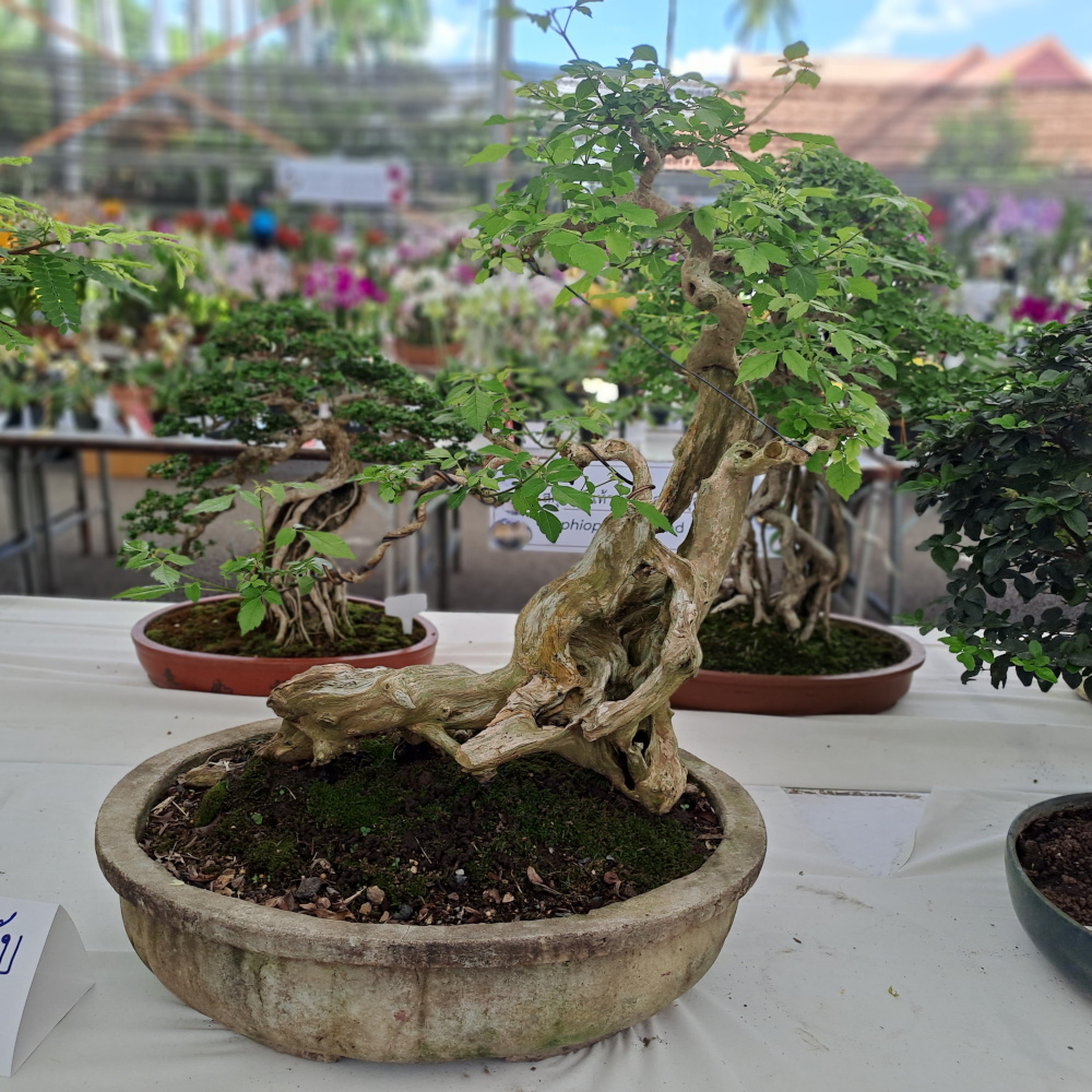En se promenant dans un parc tranquille de Chiang Mai, Rio a découvert une exposition surprenante : des arbres miniatures aux formes tordues et élégantes, posés dans de petits pots comme des sculptures vivantes. À côté, des orchidées aux couleurs incroyables, dont certaines ressemblaient à de petits visages d’animaux, de lutins, ou même d’insectes mystérieux !