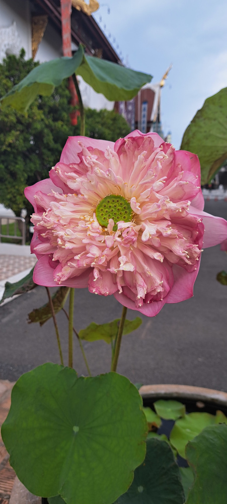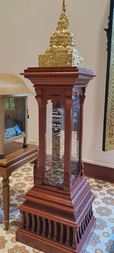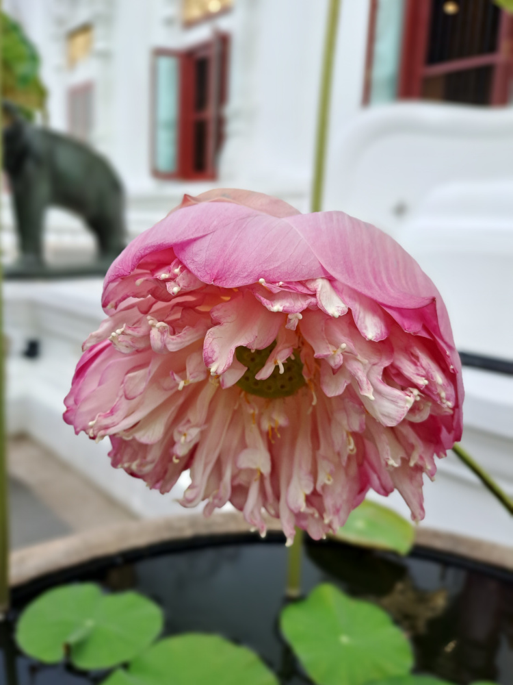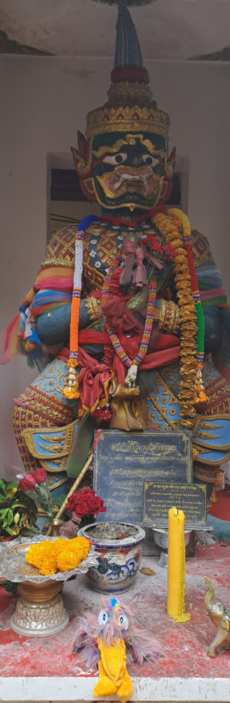 Les gens s’agenouillent, ferment les yeux, et posent des offrandes : des billets (en bahts), des fleurs, des bâtons d’encens. Moi aussi j’ai voulu essayer.