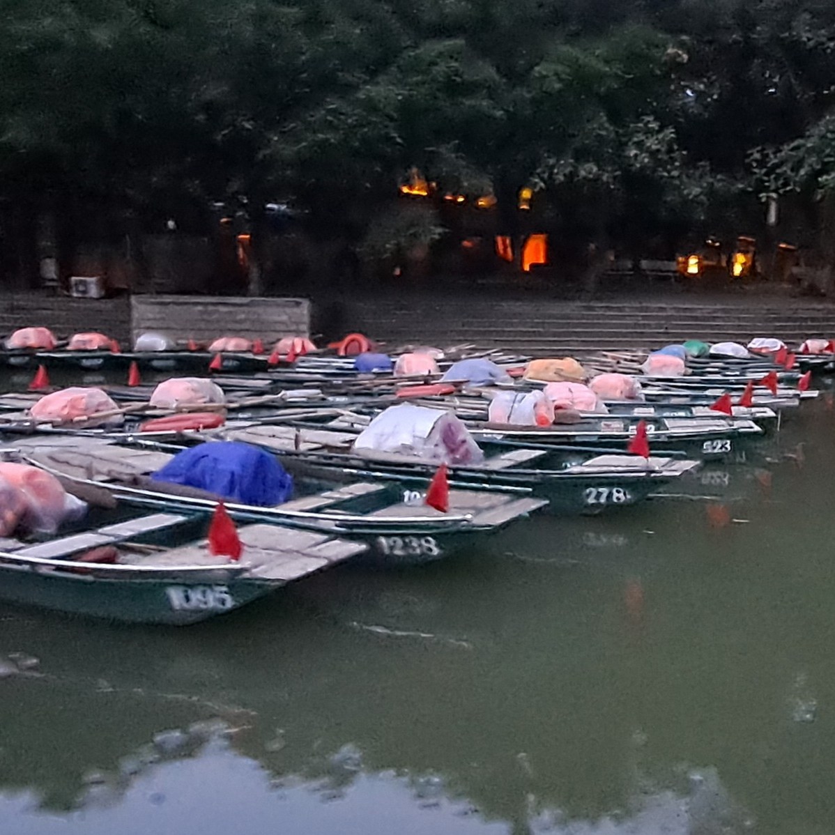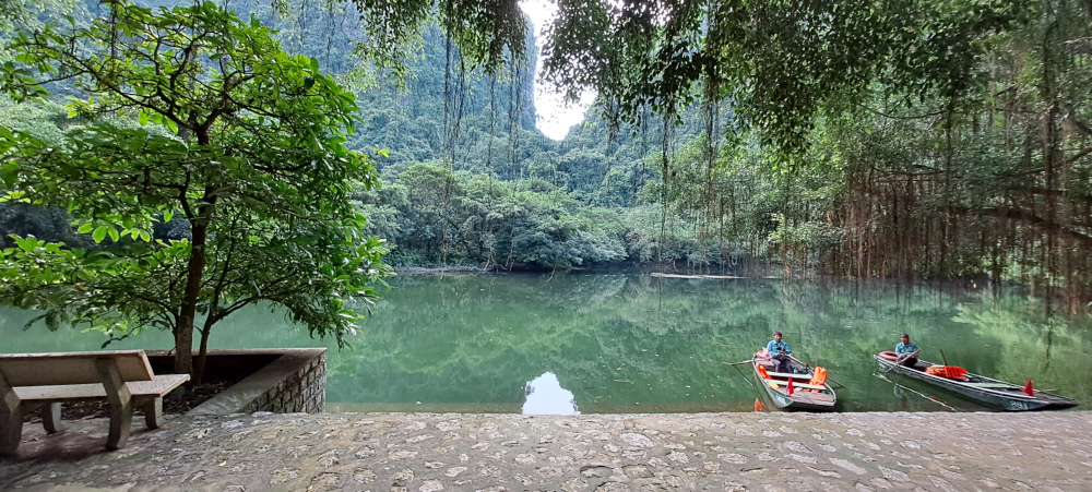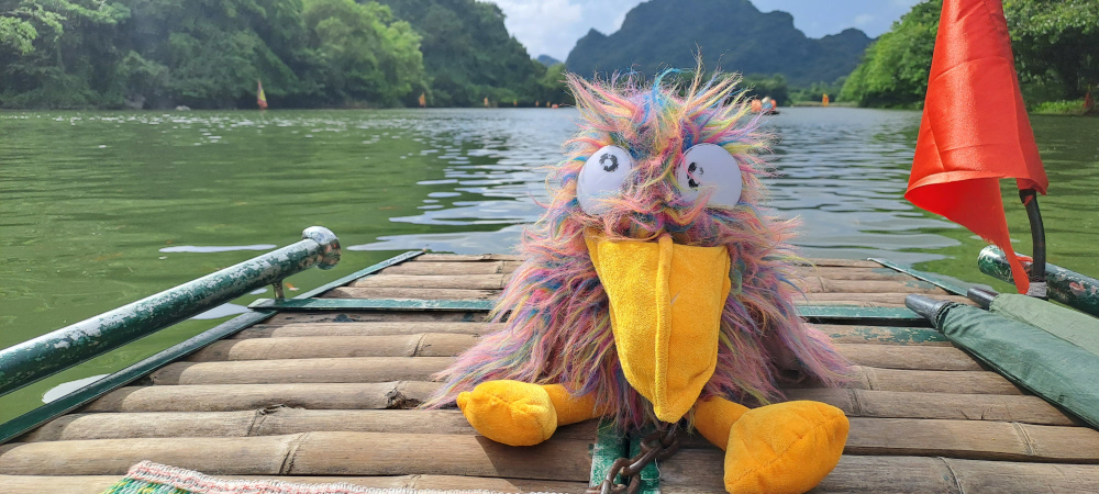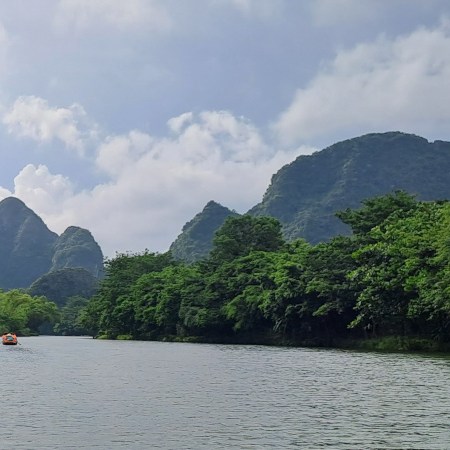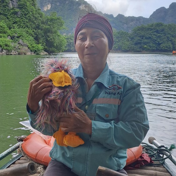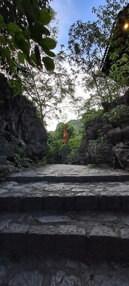 Me voilà à Tràng An, un endroit magique qu’on appelle parfois la « baie d’Ha Long terrestre ». Et tu vas comprendre pourquoi : des montagnes karstiques qui surgissent de l’eau, des rivières vertes comme des pierres précieuses, et surtout… des grottes, des temples, des mystères !