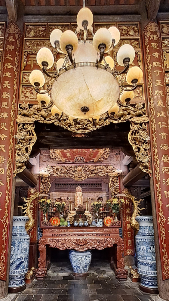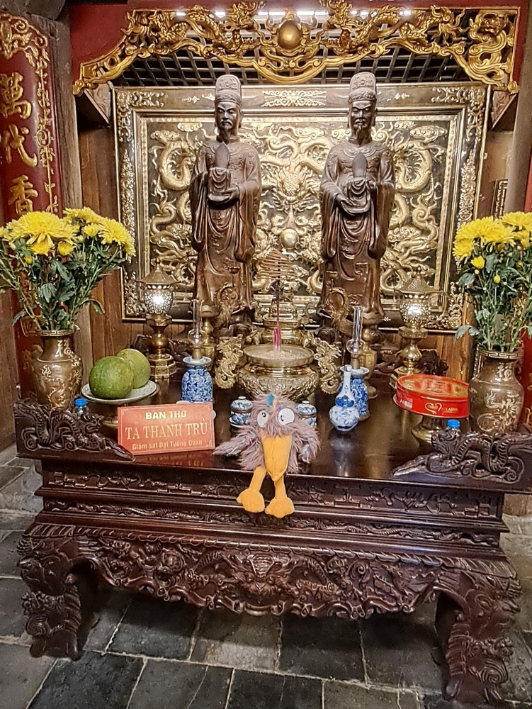 Un peu plus loin, un autre temple, cette fois avec des statues de rois et de reines : étincelantes, dorées, imposantes. Ce sont probablement les mêmes rois que j’ai découverts à Hoa Lu : Dinh Tiên Hoang et Lê Dai Hanh, les premiers souverains du Đai Cổ Việt. Ils ne sont pas oubliés ici. On leur rend hommage dans les montagnes, là où ils auraient peut-être cherché refuge ou paix.