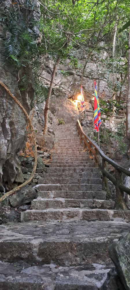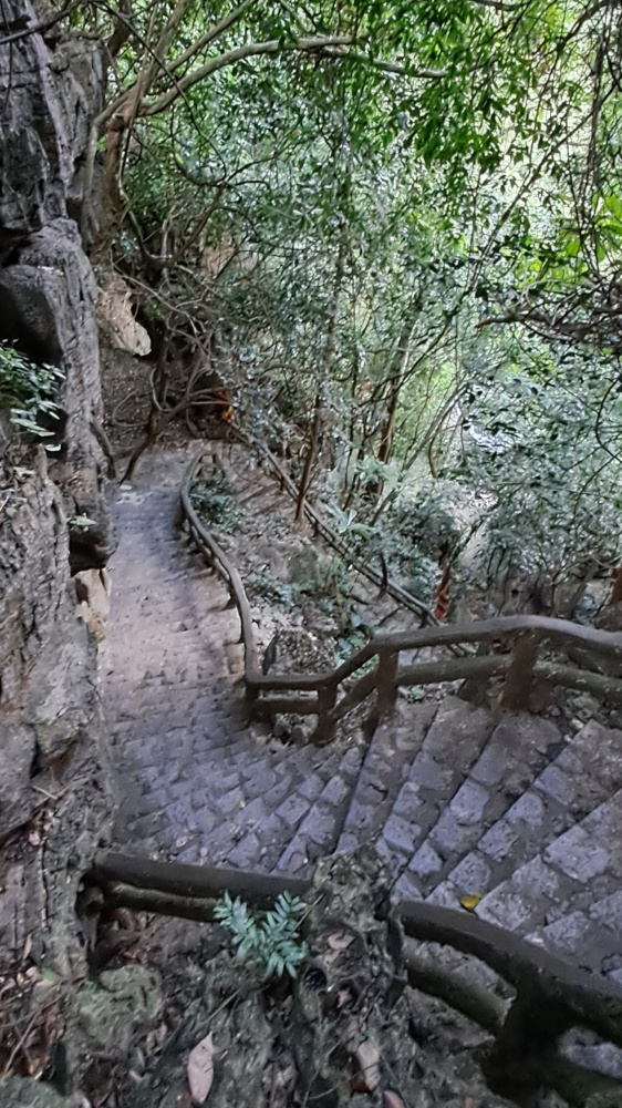 Il a fallu grimper. Et redescendre. Et regrimper. Des escaliers en pierre se faufilent dans la forêt, le long des falaises. Parfois ça glisse, parfois c’est raide, mais toujours… ça vaut le coup ! J’ai eu chaud, j’ai transpiré, mais j’ai aussi découvert des paysages à couper le souffle et des temples cachés que je n’aurais jamais imaginés.