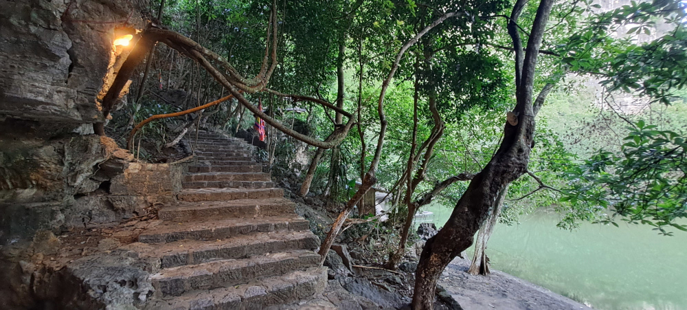 Ces temples ne sont pas comme ceux que j’ai vus ailleurs : ils sont accrochés à la roche, entourés de jungle, accessibles seulement par l’eau ou par des escaliers secrets.