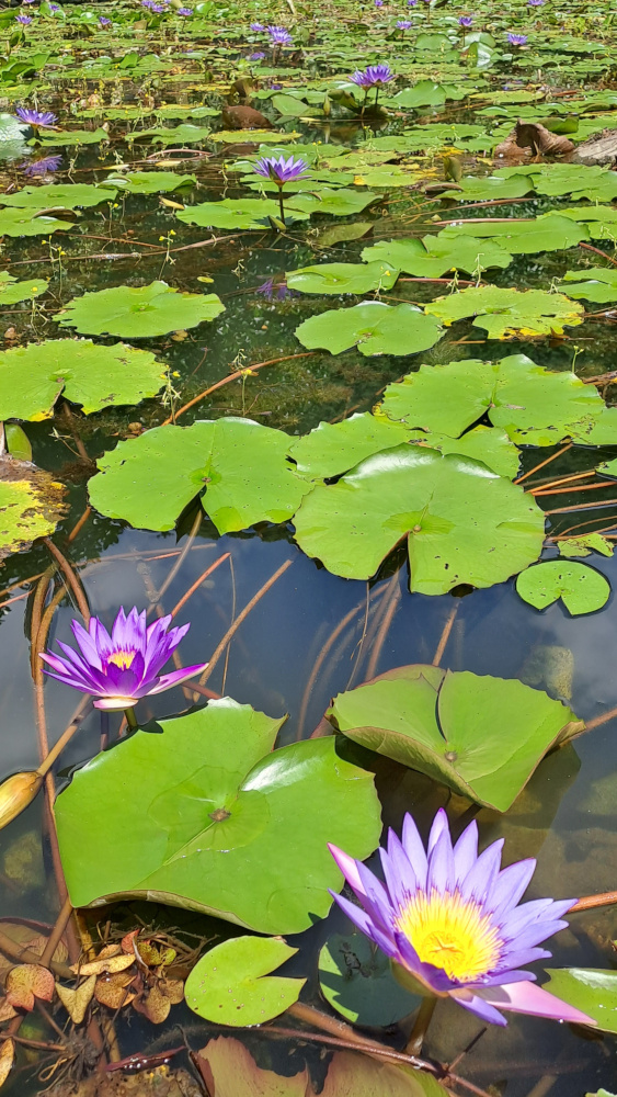 Autour de moi, câĂ©tait calme⊠des champs de lotus ondulaient doucement au vent. Leurs grandes feuilles rondes flottaient Ă la surface de lâeau, et quelques fleurs violettes sâĂ©panouissaient sous le soleil. Jâai pris le temps de les observer, une Ă une, comme si elles me soufflaient un secret.