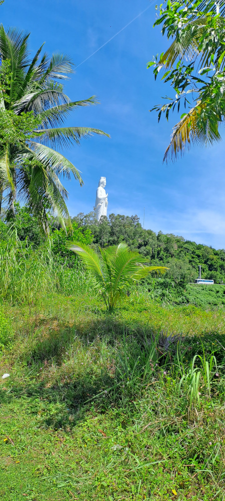 Un peu plus haut, j’aperçois une immense statue blanche qui dépasse des arbres. C’est la déesse de la miséricorde, une grande protectrice. Elle veille sur les pêcheurs, les familles, et les voyageurs comme moi !