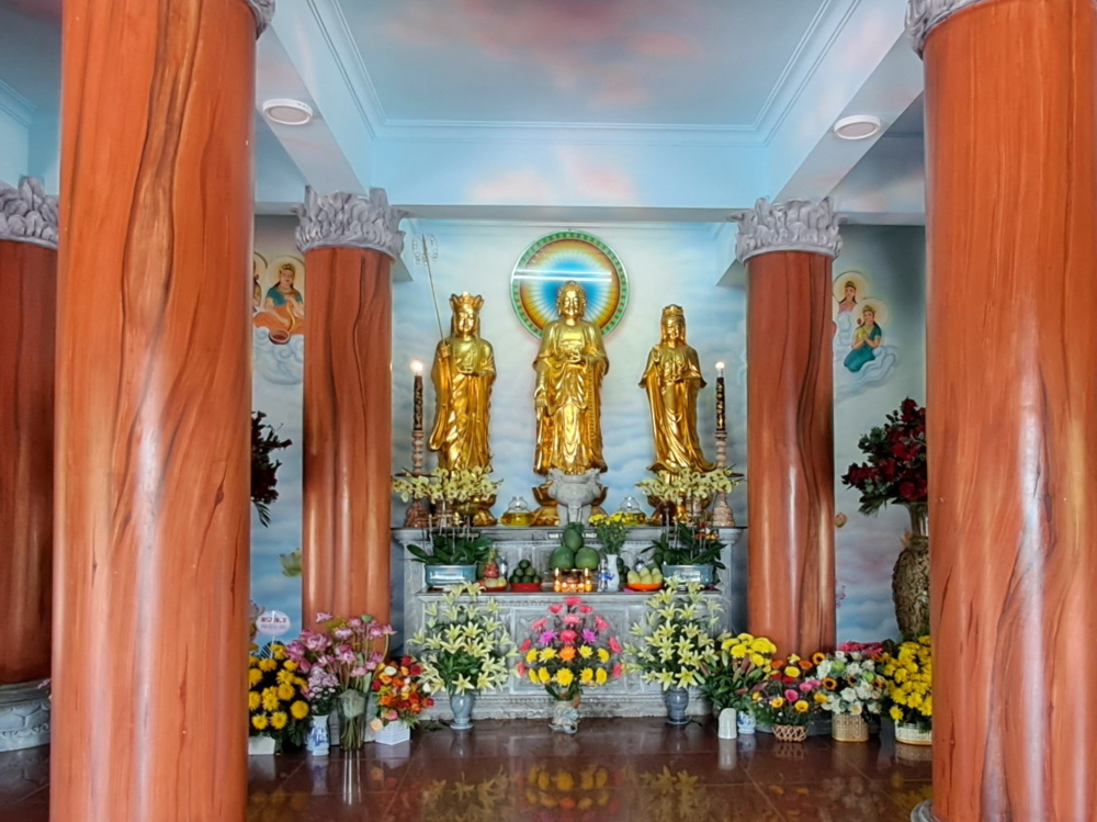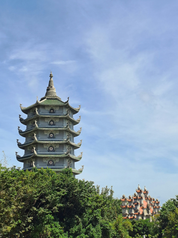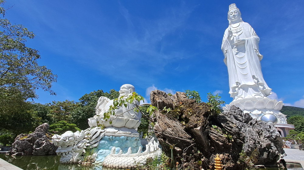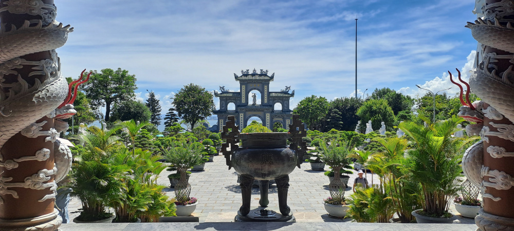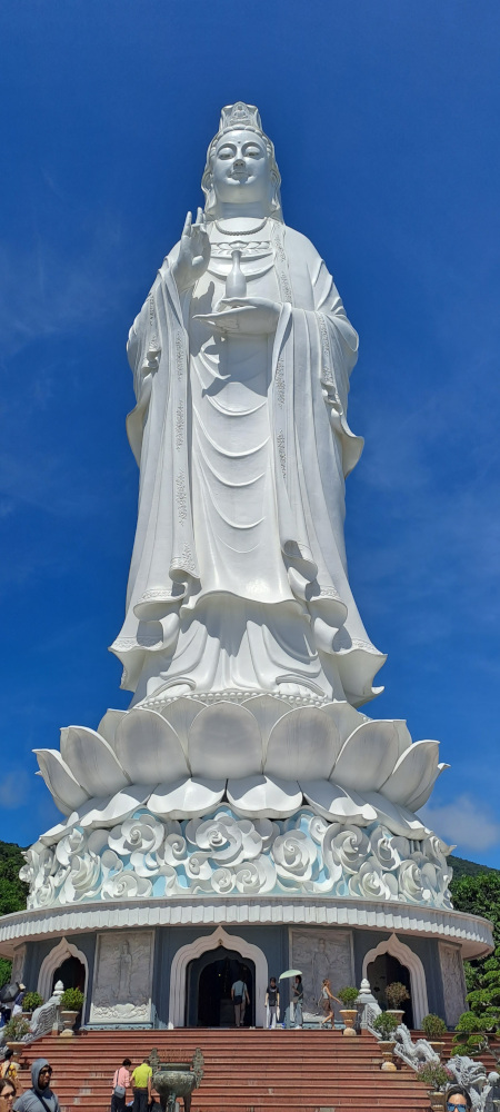 Quand je tourne la tête, je vois l’autre Da Nang : la ville, les buildings, les routes, les lumières. Tout semble neuf, rapide, bruyant. Mais dans les temples, le calme revient. Les gens prient, offrent des fleurs, des fruits, des sourires.